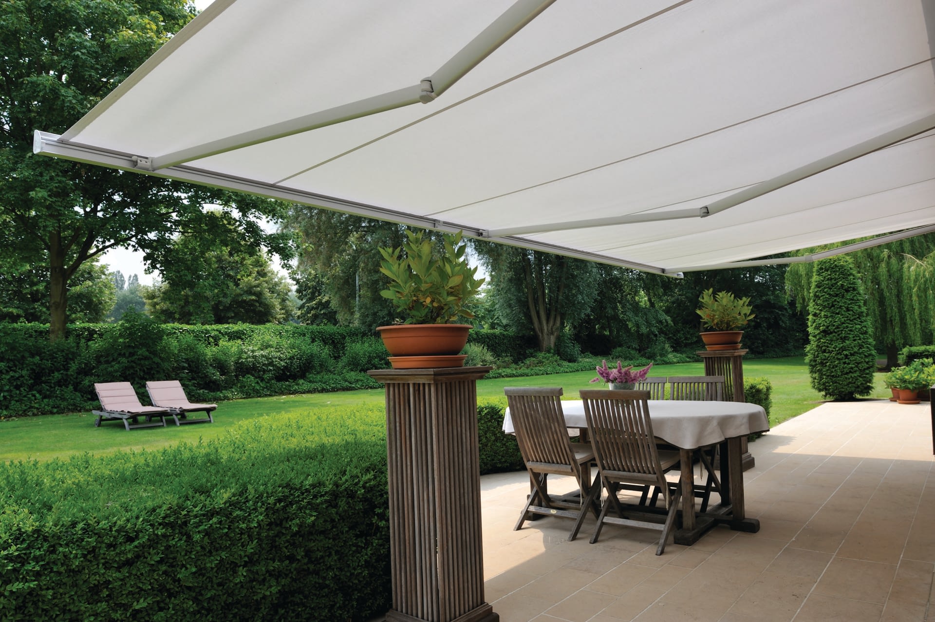 Die B25 Markise ist in drei Versionen erhältlich: Standard, Elite und Prestige. Der Unterschied liegt in der Windbeständigkeit und Stabilität. Besonders die Variante mit Prestigearmen bietet außergewöhnliche Windfestigkeit bei hohen Windgeschwindigkeiten.